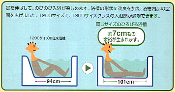 床面積はそのままで、ひとまわり大きく明るい浴室を実現してみませんか!(戸建て用のご提案) ![]() 出窓ユニットの利用で、床面積3/4坪のスペースが1坪のバス空間へ! 1150mm浴槽が、1400mm浴槽に! 床面積はそのままで、より「大きく、広く、明るい」快適バス空間が生まれます。